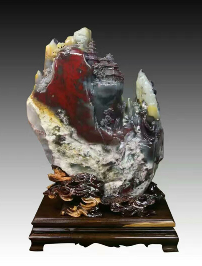 来到桂林后,陈绍德凭借其独特的设计理念和高超的雕刻技法,设计鸡血玉山水、人物、花鸟摆件,通过巧妙的运用俏色技法,使得山水作品大气磅礴,人物作品造型柔美多姿,花鸟作品神态栩栩如生,令人赞叹不已,心醉神迷。当问及他的成功秘诀时,陈绍德笑曰:“古为今师,新为今路。”细细想来,这八个字几乎囊括了所有大师成功的秘诀。试想一下,哪个行业,哪一个能称得上大师的,不是博古通今的,不是继往开来的呢!