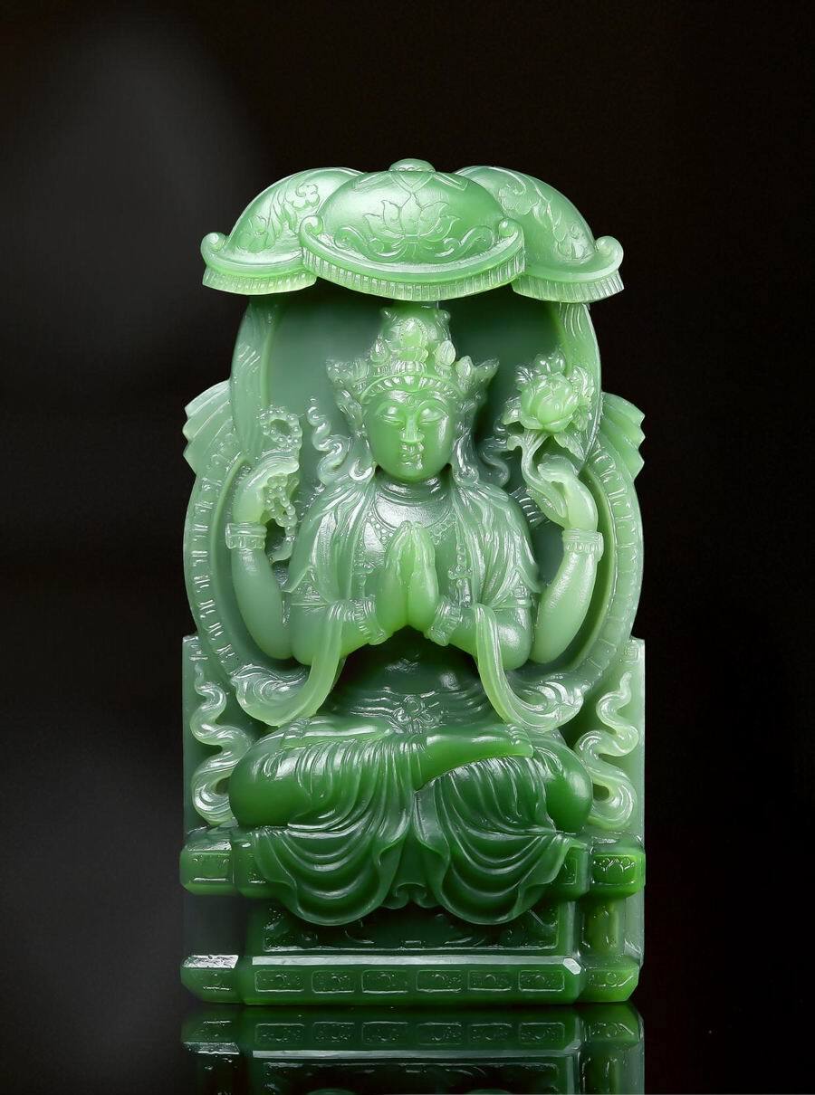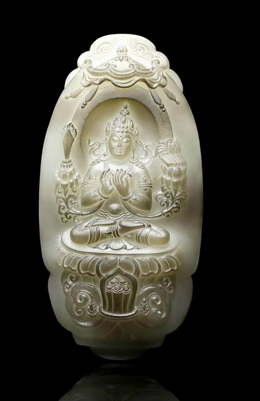 2018年和田玉作品《绿度母》 获得“中原玉博杯” 最佳工艺奖
