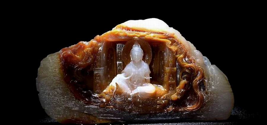 2019年绿松石作品《文殊菩萨》获得“陆子冈杯”金奖